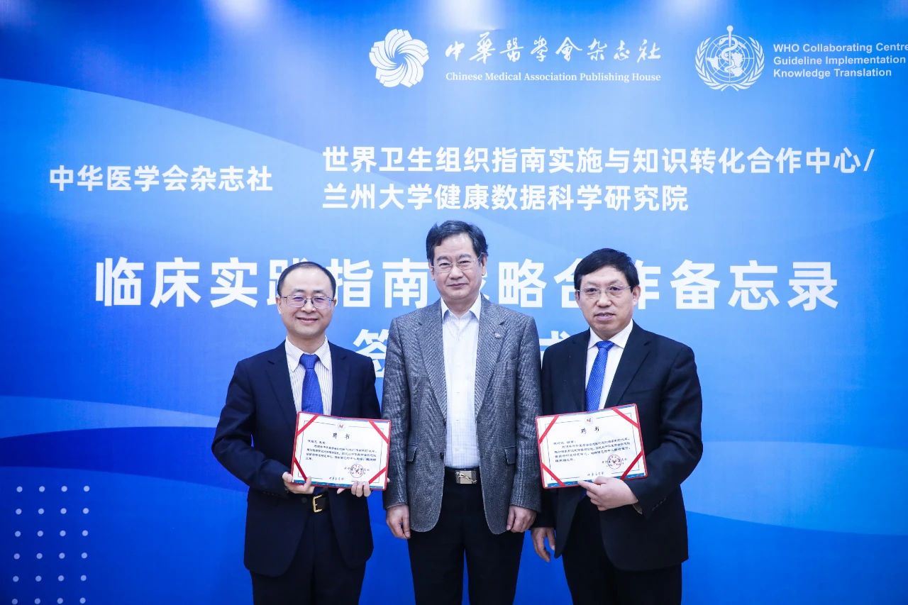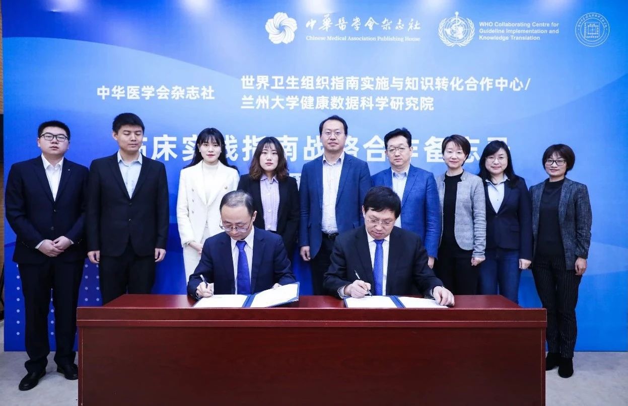 为提升中华医学会杂志社刊发的指南制订水平及报告质量,推动指南在我国有效的传播与实施,10月28日上午,中华医学会杂志社、WHO指南实施与知识转化合作中心/兰州大学健康数据科学研究院在京共同签署临床实践指南战略合作备忘录,双方将通过资源共享、优势互补,共同推动中华医学会杂志社刊发的指南向科学化、透明化和国际化迈进。